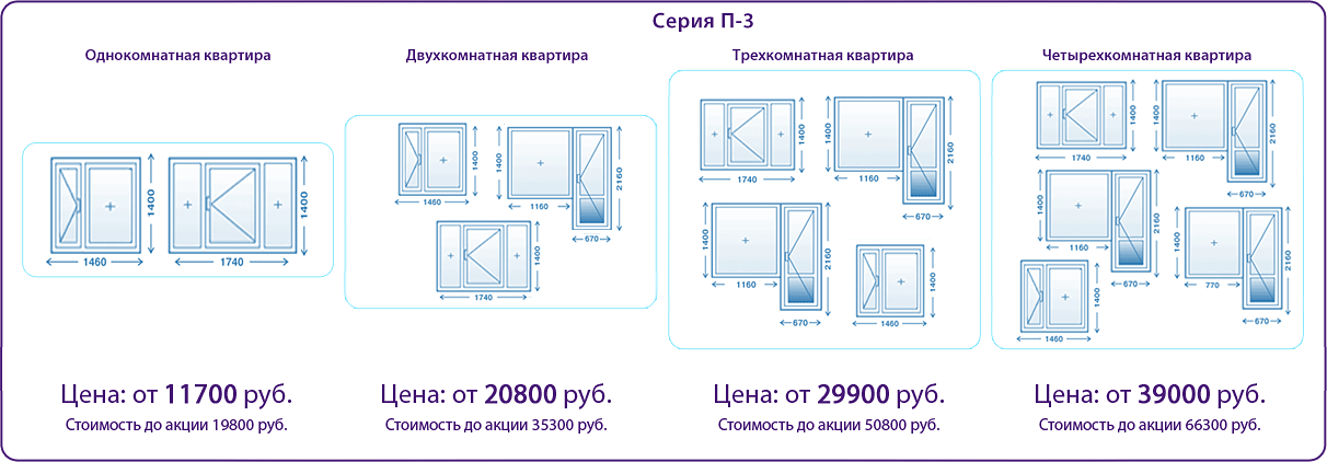 Узнайте ЦЕНУ ПЛАСТИКОВЫХ ОКОН для типовых 1-2-3 комнатных квартир!